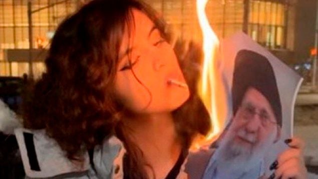 En muchas de esas manifestaciones, los asistentes se atreven a gritar «¡muerte a Jamenei!», el líder supremo iraní y han llegado a quemar o romper imágenes del ayatola. De hecho, este jueves se ha viralizado la foto de una mujer iraní con una imagen ardiendo del sátrapa Jamenei, que utiliza para encender un cigarrillo.