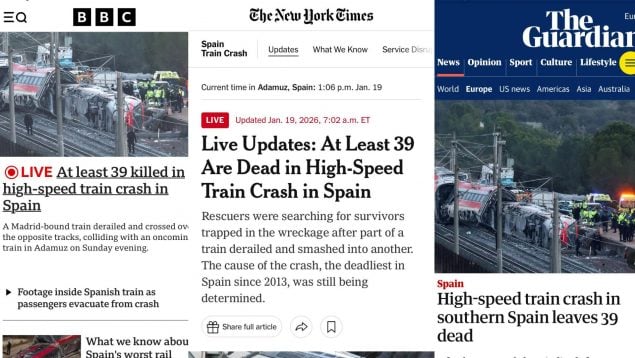 La tragedia ferroviaria ocurrida en las proximidades de la localidad de Adamuz, Córdoba, ha captado la atención de las principales cabeceras del planeta. La complejidad técnica del suceso y lo inusual de una colisión de estas características en una red de alta velocidad han generado una ola de análisis en medios como la BBC, The New York Times o The Guardian, que coinciden en calificar el evento como un hecho de difícil explicación.