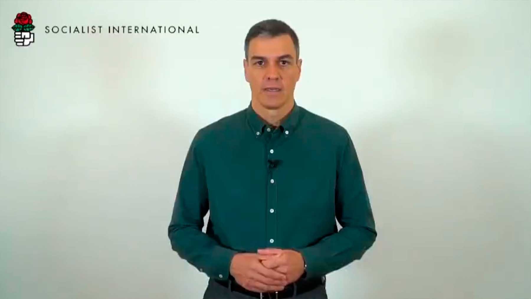 «Queridos amigos israelíes, nosotros, como miembro de la Internacional Socialista, siempre hemos luchado por la libertad, igualdad, justicia y democracia. Sin embargo, como muchos sabéis, se trata de valores que no podemos dar por sentado y que tenemos que promover y defender a diario. Como tal, ahora como siempre, la Internacional Socialista se solidariza con el pueblo de Israel. Queridos amigos, siempre nos encontraréis en la lucha por la democracia», dijo Sánchez a la multitud congregada en Tel Aviv a través de una pantalla gigante.
