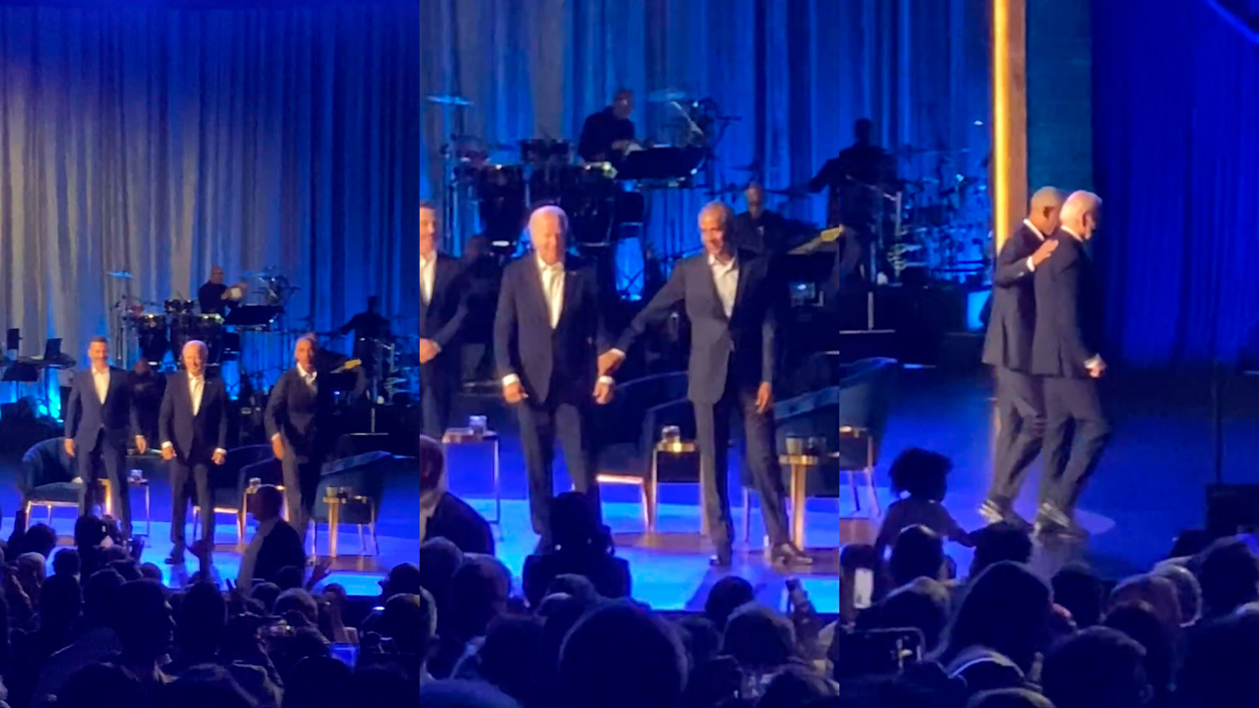 Joe Biden pareció congelarse nuevamente en el escenario, momento en el que Obama tuvo guiarle a la salida