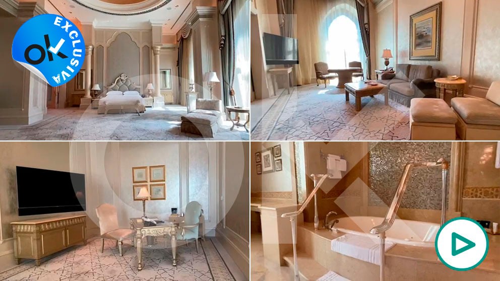 OKDIARIO ha logrado entrar en la habitación de superlujo que el Rey Don Juan Carlos usó durante cuatro meses en el Emirates Palace, un hotel situado en Abu Dabi (Emiratos Árabes). Se trata de una impresionante suite con una superficie de 470 metros cuadrados, tres dormitorios y varias terrazas privadas. Cada noche en este pequeño palacio tiene un coste de 11.000 euros.