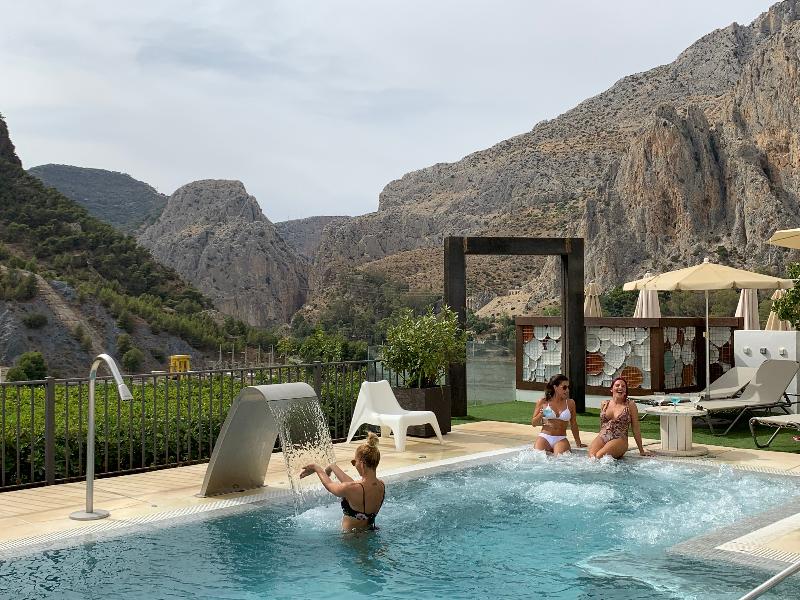 El establecimiento cuenta con piscina panorámica exterior con hidromasaje, habitaciones con jacuzzi, vistas al desfiladero y un restaurante especializado en cocina malagueña tradicional. Su ubicación, a 200 metros de la estación de tren de El Chorro, le ha valido una puntuación de 9,5 sobre 10 en ubicación en plataformas como Booking.com.
