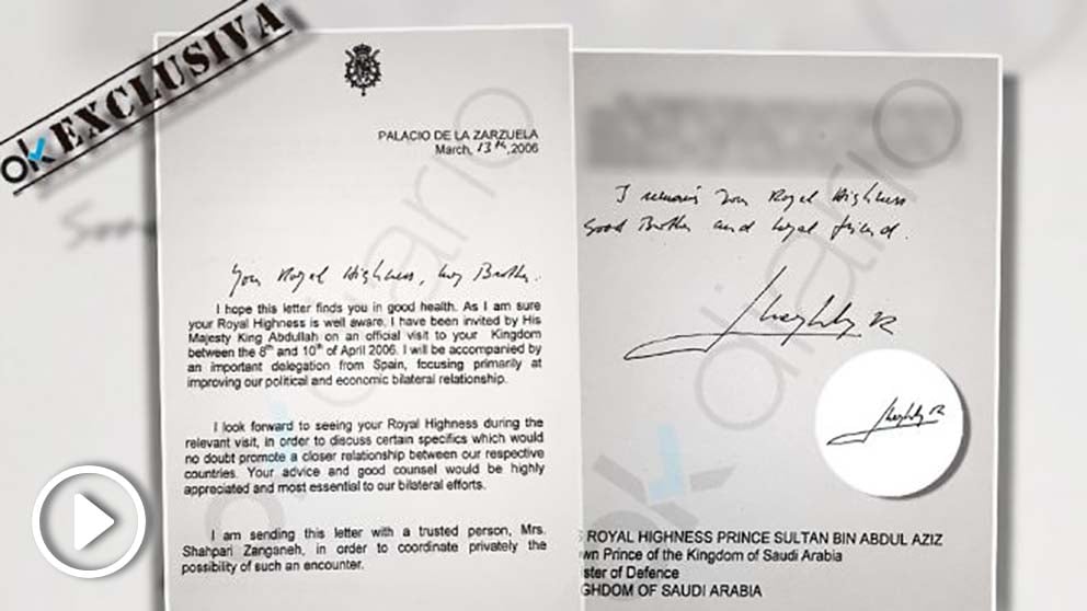 El 13 de marzo de 2006, Don Juan Carlos remitió desde la Zarzuela una carta, escrita en inglés, al entonces Príncipe de Arabia Saudita y ministro de Defensa, Sultán Bin Abdul Aziz, en la que le recomendaba a la comisionista internacional como “persona de confianza”. SM le comentaba al hijo del rey Abdullah: “Envío esta carta con una persona de confianza, Miss Shahpari Zanganeh, para coordinar de manera privada la posibilidad de un encuentro”.