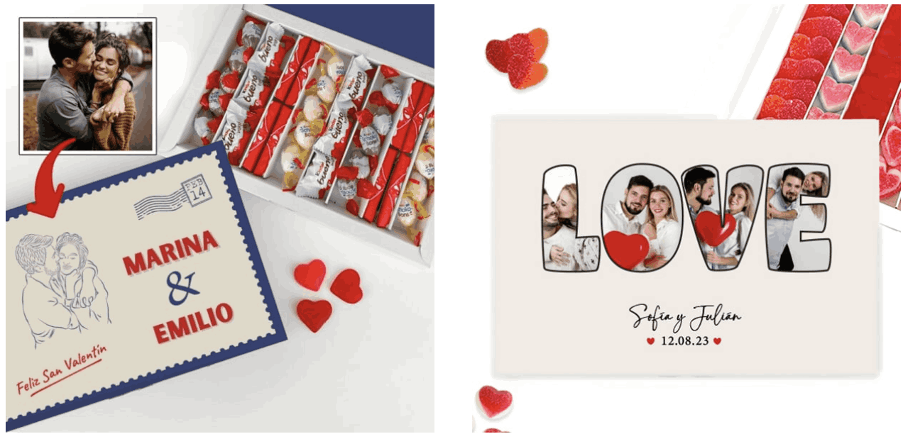 Nosotros recomendamos Transparent Gift, que destaca por su volumen de ventas, su calidad en los productos y su rapidez en los envíos. En su catálogo, se puede encontrar una sección dedicada a regalos para San Valentín, que tienen opciones de personalización fáciles e intuitivas.