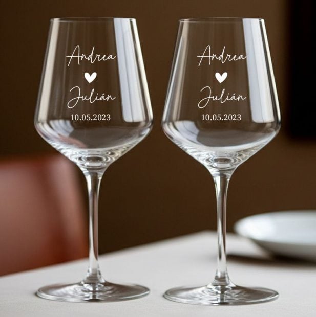 Un brindis después de una cena romántica es un clásico de San Valentín. Con copas de vino personalizadas, ese momento se convierte en un recuerdo que la pareja puede repetir en aniversarios y celebraciones durante años.