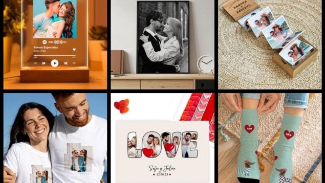 Si a tu pareja le gusta el humor, triunfan calcetines o bóxer con foto. Si es más clásica, mejor joya, pulsera o copas grabadas.