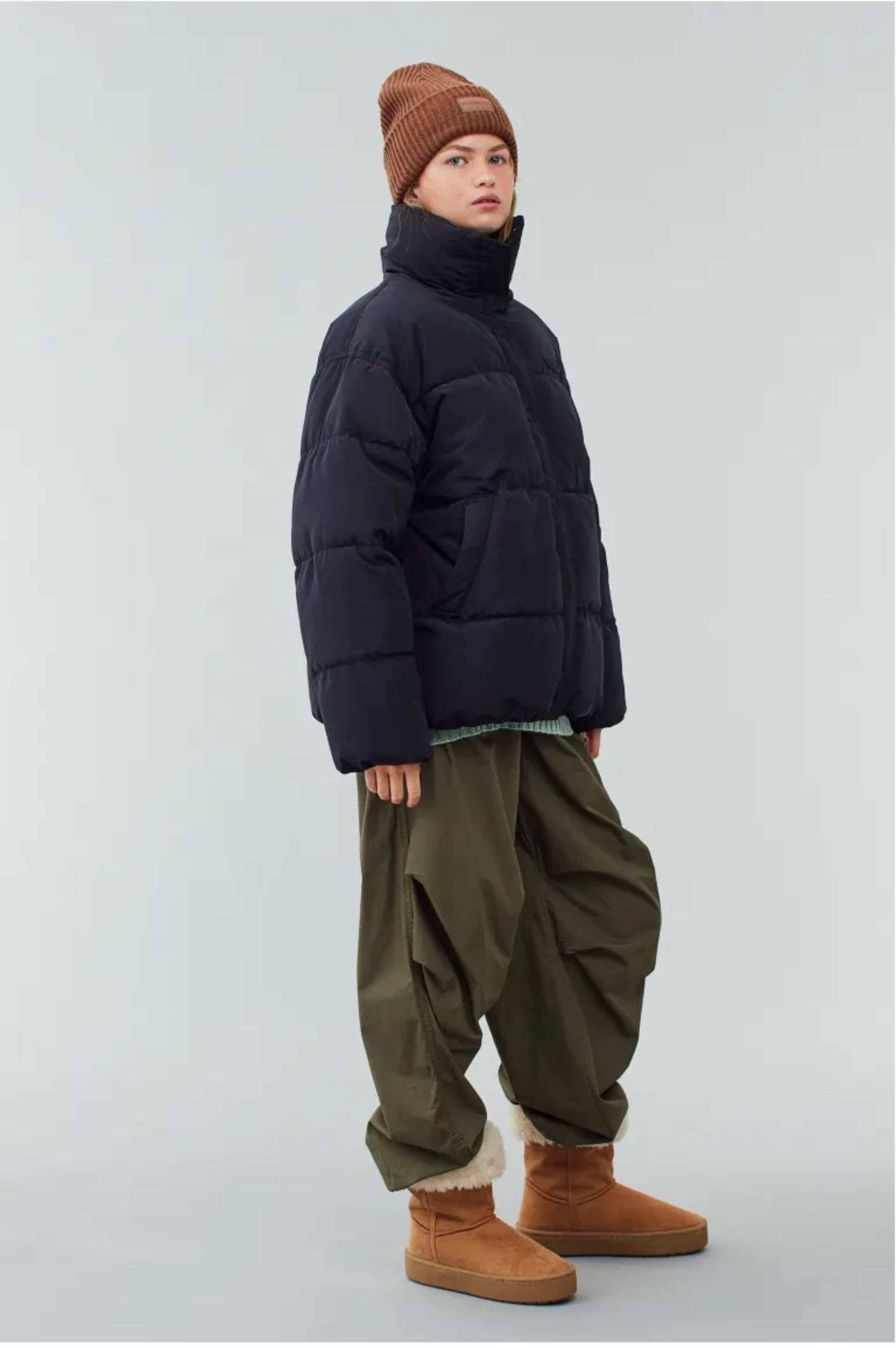 Más clásico es el modelo guateado (39,99 euros) aunque igual de acertado. La chaqueta acolchada que al final llevarás todos los días, combinada con looks como unos pantalones cargo o unos parachute y el calzado más cómodo.