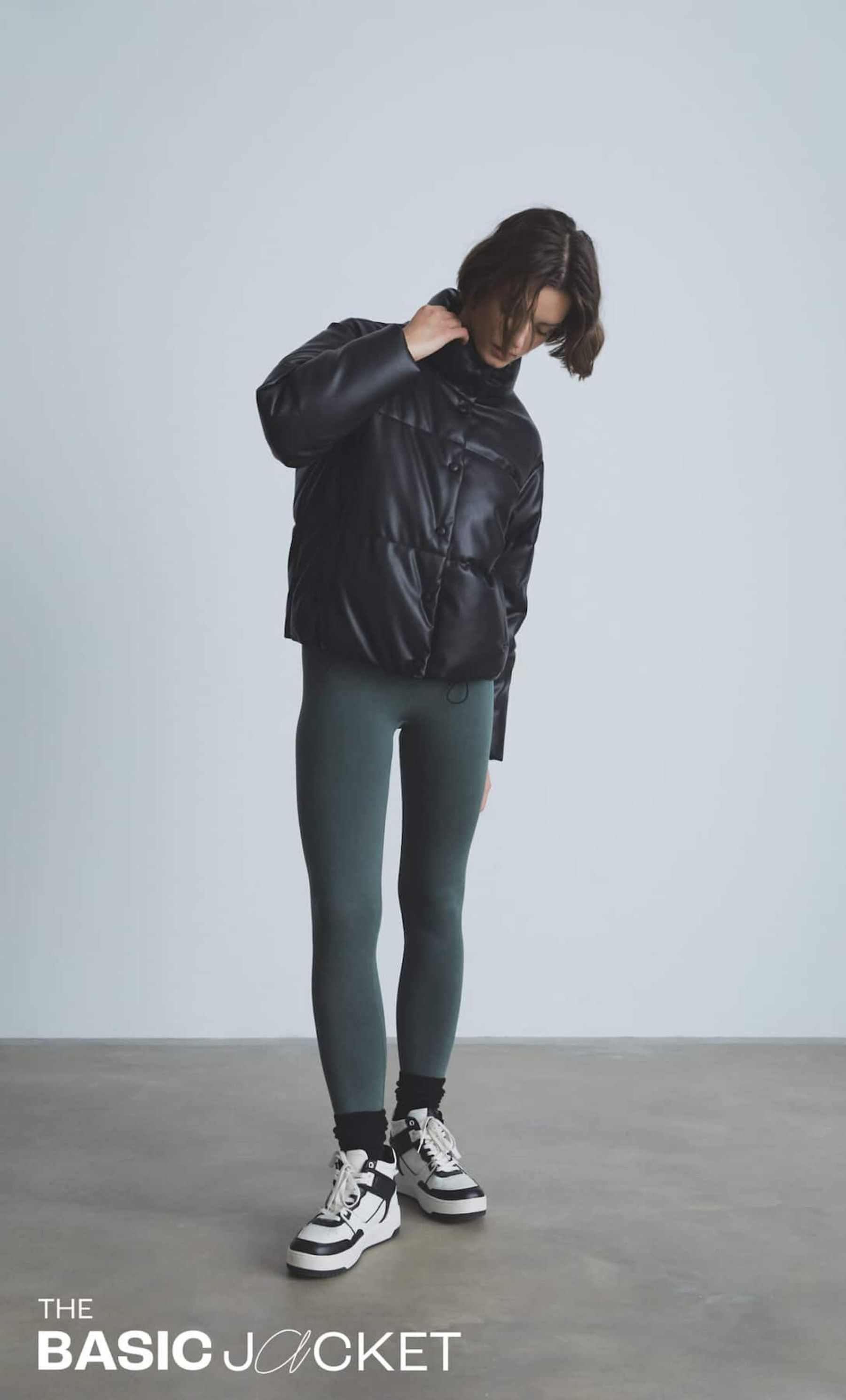 O puedes encontrar también looks mucho más relajados y de estilo deportivo como llevar la chaqueta «puffy» de efecto piel (39,99 euros) con unos simples leggings.