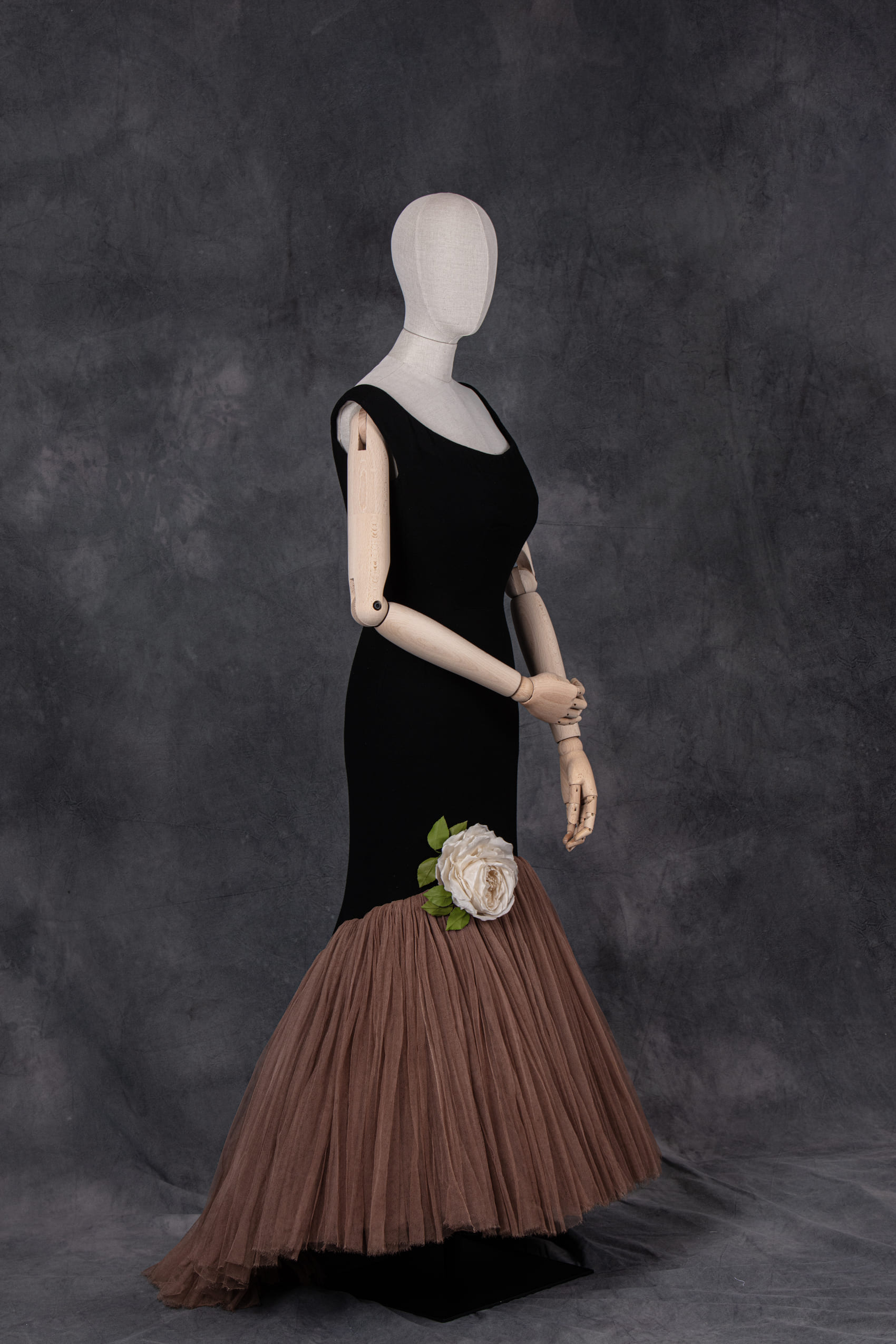 Paloma Moreno, diseñadora y Ceo de dfyf creó unas sandalias de tacón en terciopelo de seda negro adornado con rosas rizadas en organza y hojas de terciopelo realizadas a mano realizadas por Mariana Barturen. La inclusión de defloresyfloreros en esta exposición subraya su compromiso con la excelencia en el diseño y la producción artesanal de calzado.