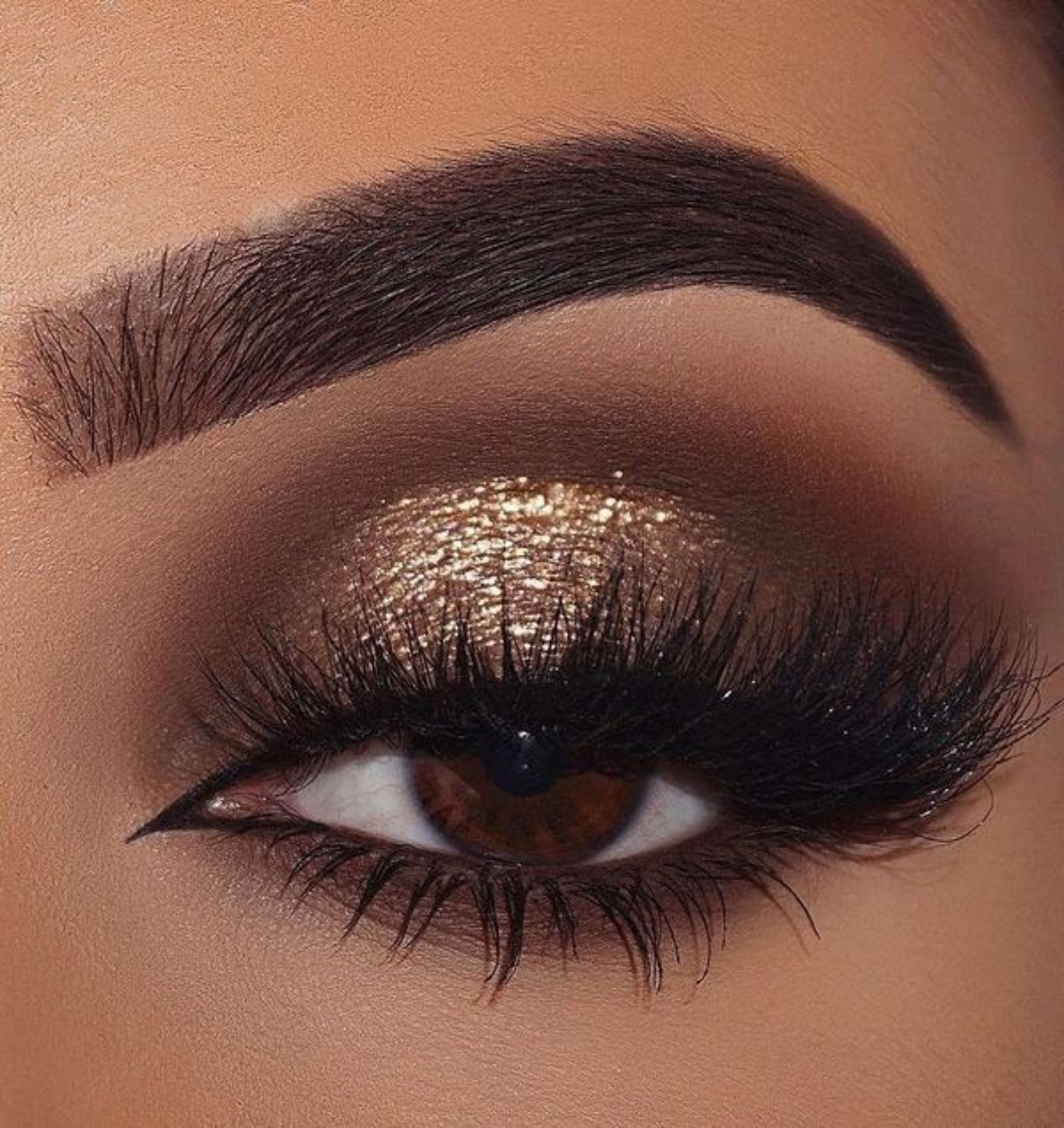 Para un brillo clásico de Año Nuevo, agrega un poco de brillo a tu look con este llamativo ojo. Completado con unas buenas pestañas y además, el uso de un labial nude oscuro que tenga solo un toque de brillo (así como esas cejas bellamente esculpidas), este aspecto reluciente elevará cualquier atuendo.
