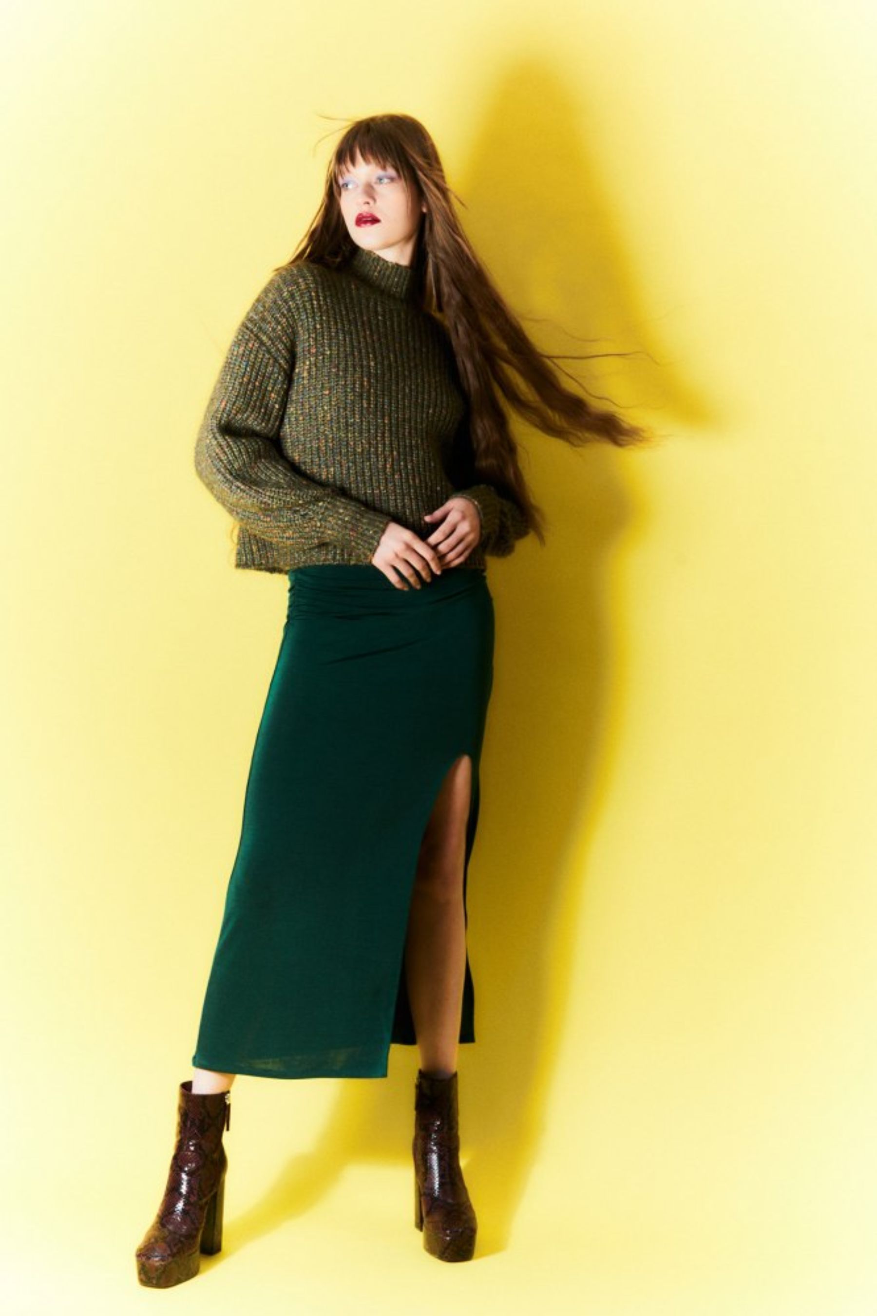 Jersey punto rib. Un jersey algo más grueso y en bonito color verde que podéis combinar con una minifalda de piel. Precio: 15,99 euros.