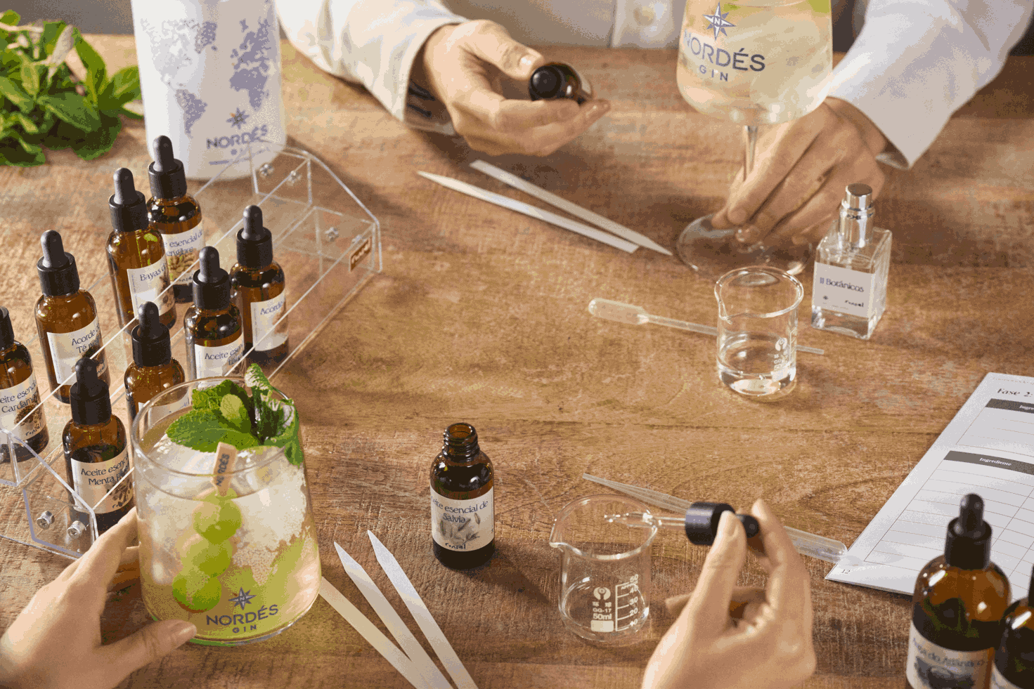 Porque no es lo mismo conocer la teoría que descubrir el producto de primera mano, el taller continuará con un pequeño reset olfativo en el que los participantes podrán degustar distintas elaboraciones con Nordés. Desde el refrescante Nordés Verbena, un cóctel cítrico que se puede consumir tanto con Nordés gin como con Nordés 0,0, hasta su cóctel Nordesiño, epítome de la esencia gallega de la marca.