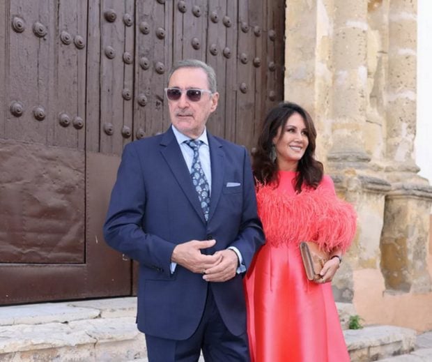 La jornada ha empezado a media mañana. Como era de esperar, muchos curiosos se han acercado al templo donde ha tenido lugar el evento. Los novios han escogido un escenario especial: la Basílica Menor de Nuestra Señora de la Caridad de Sanlúcar de Barrameda, en Cádiz. El primero en llegar ha sido Carlos Herrera, quien ha acudido acompañado de su pareja, la periodista Pepa Gea. Esta última ha llevado un vestido muy original de color coral caracterizado por unas plumas en la parte superior del escote. Ha completado el look con un bolso de mano y unos zapatos a juego.
