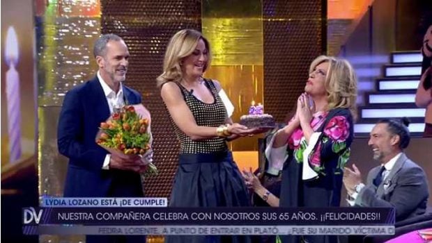 Lydia Lozano celebrando su cumpeaños en ‘¡De Viernes!’. (Foto: Telecinco)