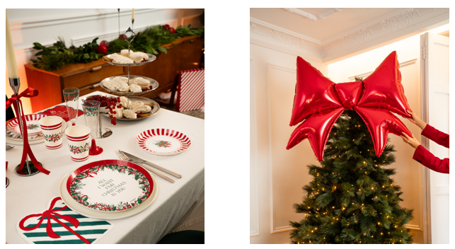 - Según Oh Yeah! mesas con platos, vasos, servilletas son los complementos navideños. «Los espacios también se decoran con elementos sorprendentes como globos 3D en forma de lazo rojo gigante, renos o Reyes Magos, y se llevan los materiales FSC o reutilizables».