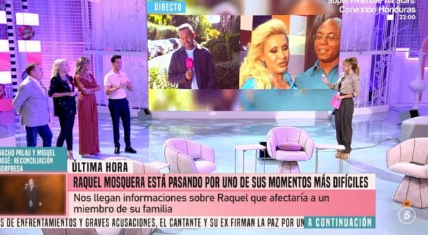 ‘Fiesta’ informando sobre la situación de Raquel Mosquera. (Foto: Telecinco)