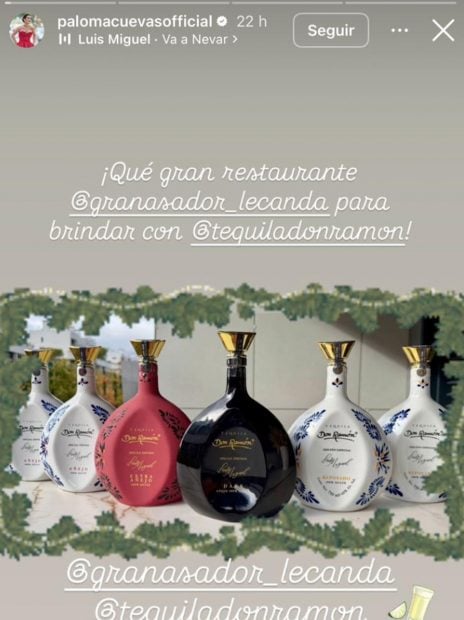Aunque Paloma Cuevas evita pronunciarse públicamente sobre Luis Miguel, tiene detalles muy bonitos. Por ejemplo, hace unas horas ha dado publicidad a través de Instagram a un restaurante llamado Gran Asador Lecanda que está especializado en comida vasca y que tiene en su carta el tequila Don Ramón, la bebida para la que trabaja el Sol de México.