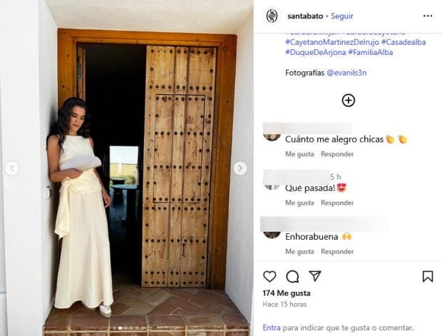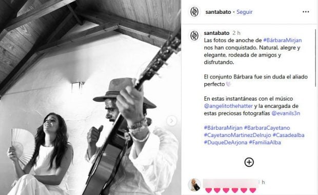 Teniendo en cuenta la buena reputación de Bárbara y la expectación que está generando su boda, es normal que Santa Bato le haya dedicado una publicación en su cuenta de Instagram: «Ser parte de un instante tan importante en la vida de la pareja es un honor que guardaremos siempre con muchísimo cariño. Vestir a Bárbara en este capítulo previo a su boda nos recuerda por qué hacemos lo que hacemos: crear prendas que acompañen momentos irrepetibles. Desde aquí les deseamos a Bárbara y Cayetano toda la felicidad en esta nueva etapa que comienzan. Gracias de corazón por dejarnos formar parte de un recuerdo tan especial».