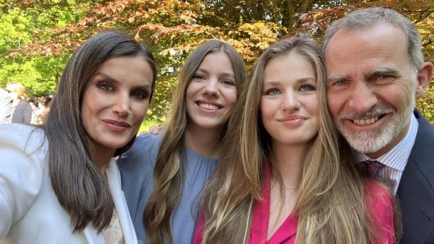 El selfie de los reyes junto a sus hijas en la graduación de la princesa Leonor en el UWC Atlant College. (Foto: Gtres)