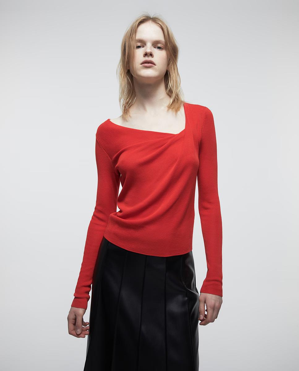 El drapeado de este jersey rojo lo hace una apuesta elegante y de lo más especial, además de atemporal. No importa la edad que tengas o si es un día de oficina o una reunión con tus jefes, sin duda alguna, estamos ante una de esas piezas que no nos pueden faltar.