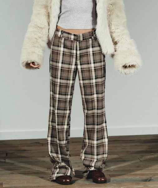 Luciaetayo8 resalta el pantalón de cuadros que combina con camiseta en color beige. hablamos del pantalón de tiro alto con trabillas. Bolsillos laterales y de vivo en espalda. Cierre frontal con cremallera, botón interior y ganchos metálico.
