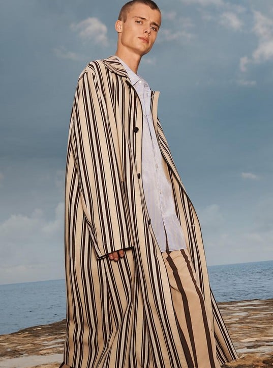 El modelo trench de algodón es del lino y rayas y está dentro de la edición limited