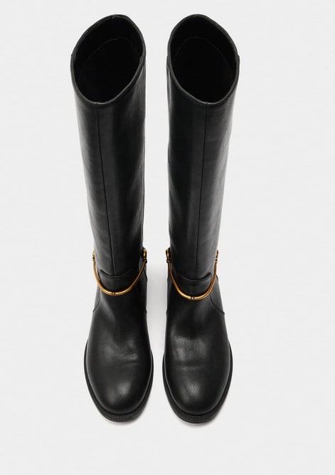 Este elemento aporta modernidad y estilo a las botas, haciendo que se destaquen en cualquier outfit. El brillo sutil del metal crea un contraste con el resto del calzado, añadiendo un punto focal que eleva el look sin ser excesivo.