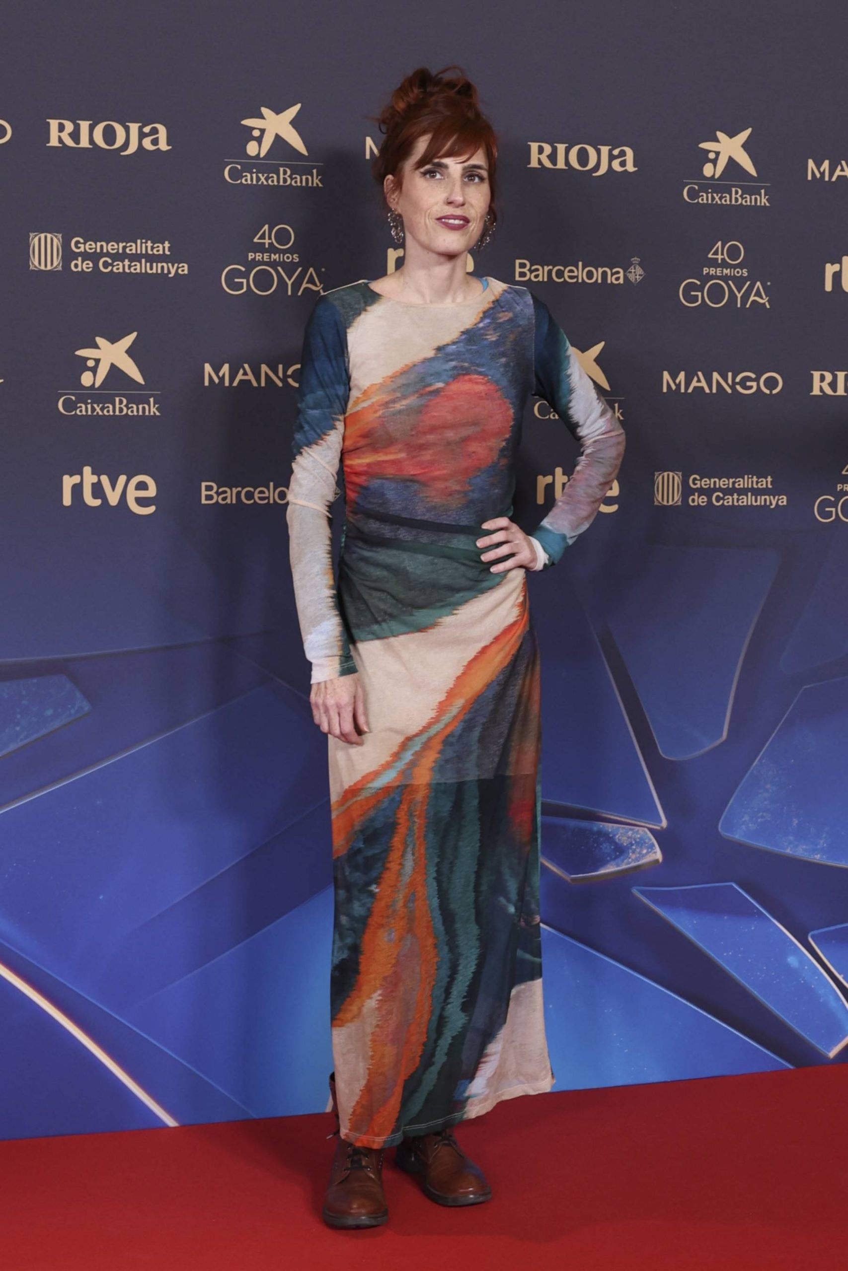 Uno de los estilismos que más miradas acaparó fue el de Susana Abaitua. La actriz, que ha logrado la nominación al Goya a mejor actriz protagonista por Un fantasma en la batalla, la película dirigida por Agustín Díaz Yanes e inspirada en la misma historia real que narraba la cinta de Arantxa Etxebarria, apostó por un juego cromático rotundo y nada obvio: negro estructurado en la parte superior, con cuello joya verde oliva y botonadura central, combinado con una falda burdeos de inspiración flamenca, drapeada y con nudos laterales que aportaban movimiento y teatralidad. Un look con referencias muy nuestras, equilibrado entre lo clásico y lo contemporáneo, que dialogaba a la perfección con el espíritu del cine de autor.