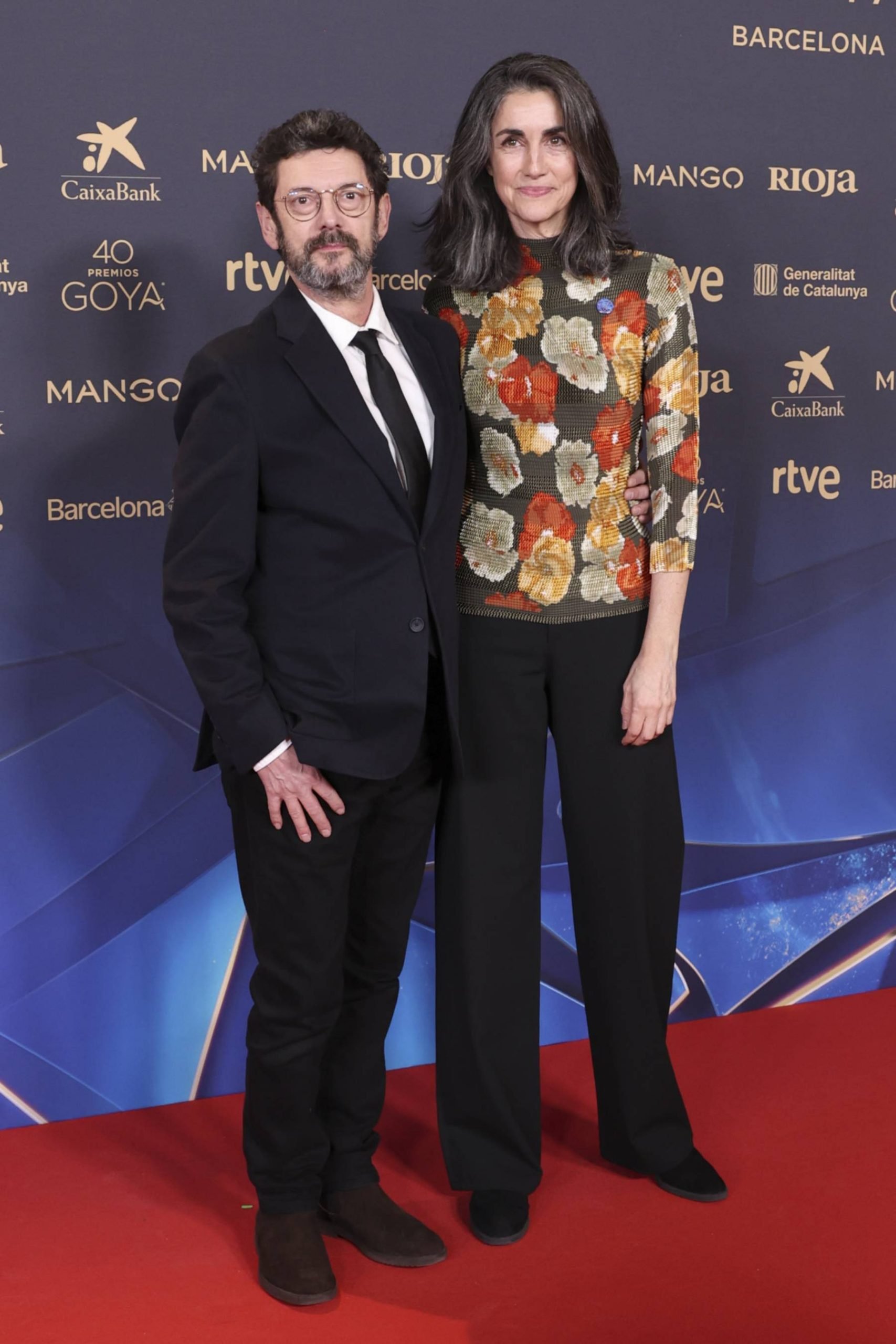 Por su parte, Nora Navas, que está nominada a mejor actriz por su interpretación en Mi amiga Eva, optó por un total look en piel en tono vino, compuesto por vestido midi y abrigo a juego, una apuesta rotunda que combinaba sensualidad y elegancia sin estridencias. El acabado pulido del cuero, la silueta entallada y el uso monocromático del color convertían el conjunto en una declaración de intenciones: femenina, poderosa y absolutamente atemporal. A ella se unió Alba Flores, que apostó por un total look negro de aire sobrio y contemporáneo, formado por pantalones de pinza, jersey de cuello alto y americana, todo en clave black, roto únicamente por un sutil detalle en azul klein y unos botines, confirmando su afinidad por una estética depurada, cómoda y con personalidad.