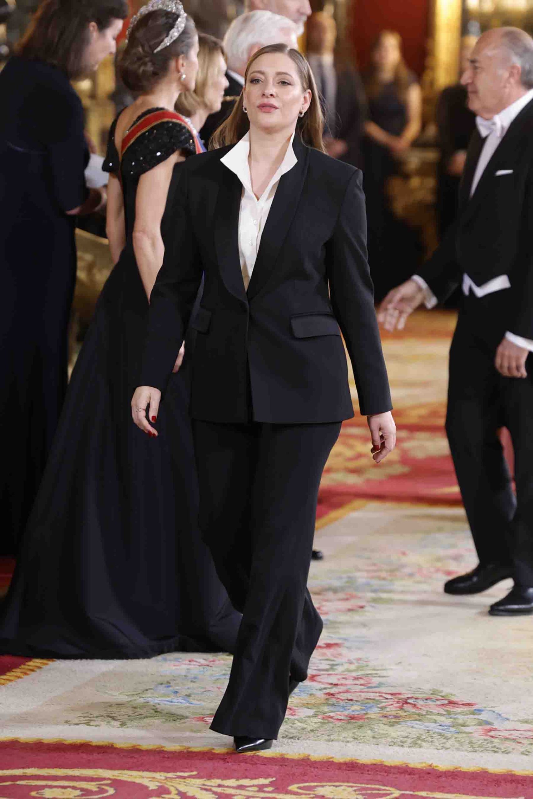 La portavoz del grupo parlamentario popular en el Congreso de los Diputados fue una de las más sofisticadas de la velada. Ester Muñoz sorprendió con un clásico traje sastre de color negro, de líneas depuradas y con silueta ligeramente oversize. Lo combinó con una blusa blanca y zapatos de tacón negro. Muñoz llevó el cabello liso y con la frente despejada, así como un maquillaje y joyas discretas.