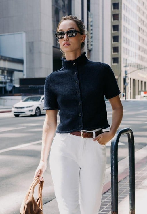 - Para un look casual: combínala con unos vaqueros de tiro alto y zapatillas blancas.