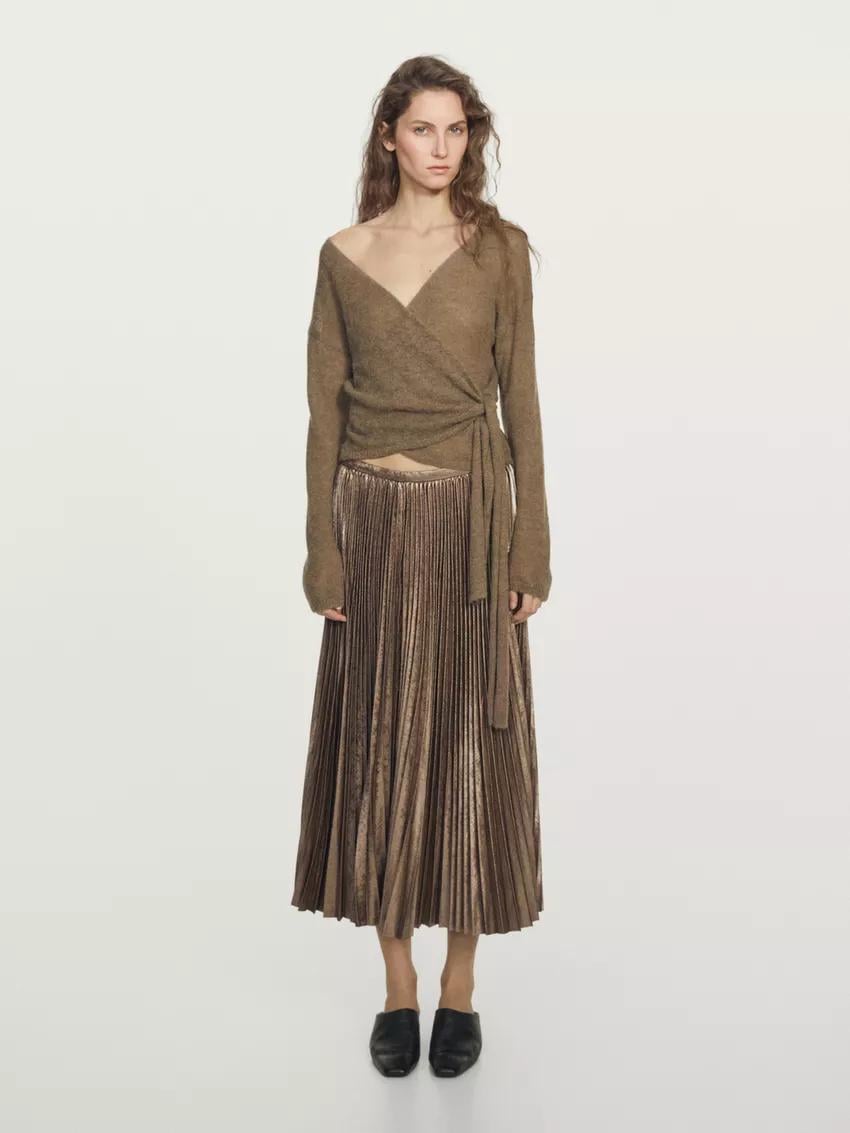 La falda de Letizia ya no está disponible, pero Massimo Dutti tiene buenas opciones en estos días en los que vamos en busca del look festivo perfecto. En este caso, podremos descubrir una buena prenda como una falda plisada que parece hecha de oro.