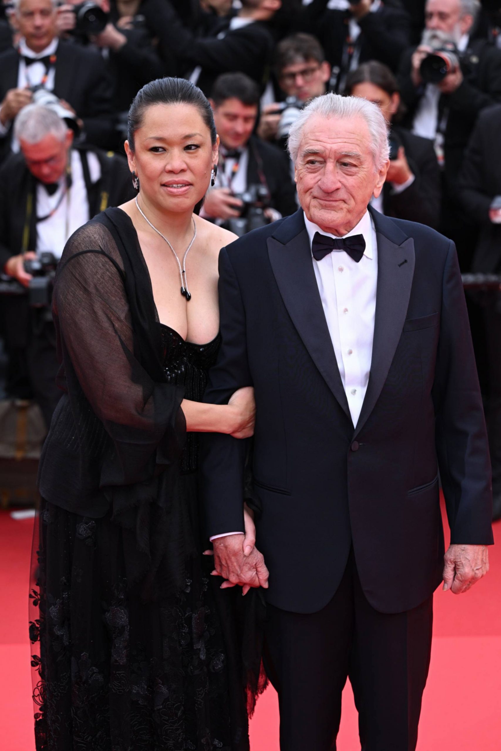Entre los hombres, Carlos Sainz apostó por la sobriedad con un esmoquin clásico de chaqueta blanca. Robert De Niro, homenajeado con una Palma de Oro honorífica, asistió acompañado por su esposa Tiffany Chen, y fue recibido con una ovación. El actor lució un traje negro tradicional, mientras que Chen optó por un vestido azul marino discreto pero sofisticado.