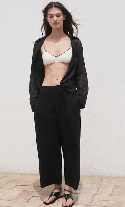 El pantalón crop lino destaca por su diseño recto y favorecedor