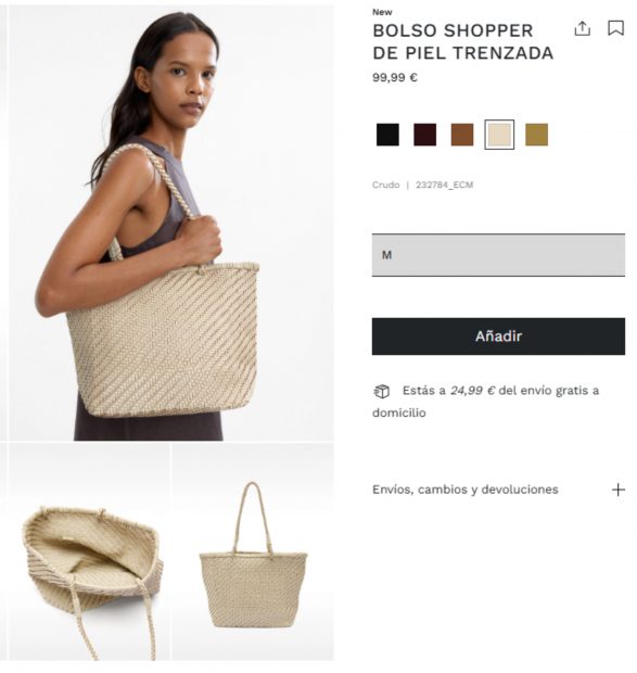Otra de las características de este artículo es que lo proponen en varios colores: en negro (cuya referencia es 232784_BKM); en marrón (232784_BNM); en camel (232784_CAM); crudo (232784_ECM) o verde -para las más atrevidas- (232784_GNM).