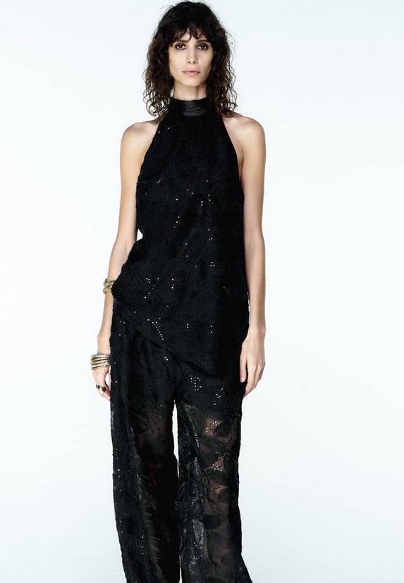 El protagonismo de las lentejuelas, los tonos oscuros y las siluetas cómodas refleja una moda pensada para disfrutar. En esta ocasión Zara presenta el Top asimétrico con lentejuelas, con un precio de 25,95 euros, una prenda ideal para looks festivos sofisticados. Cuenta con un elegante cuello halter y un bajo asimétrico que aporta dinamismo al diseño. Está confeccionado en un tejido con estructura, bordados y lentejuelas que reflejan la luz de forma sutil. Por su parte, el Pantalón bombacho con lentejuelas, por 35,95 euros, destaca por su combinación de comodidad y estilo. Es de tiro alto, con cintura elástica, lo que lo hace especialmente cómodo para largas celebraciones.