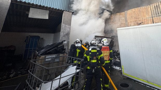 El aparatoso incendio de un desguace provoca desalojos y moviliza un gran operativo de Bomberos en Madrid