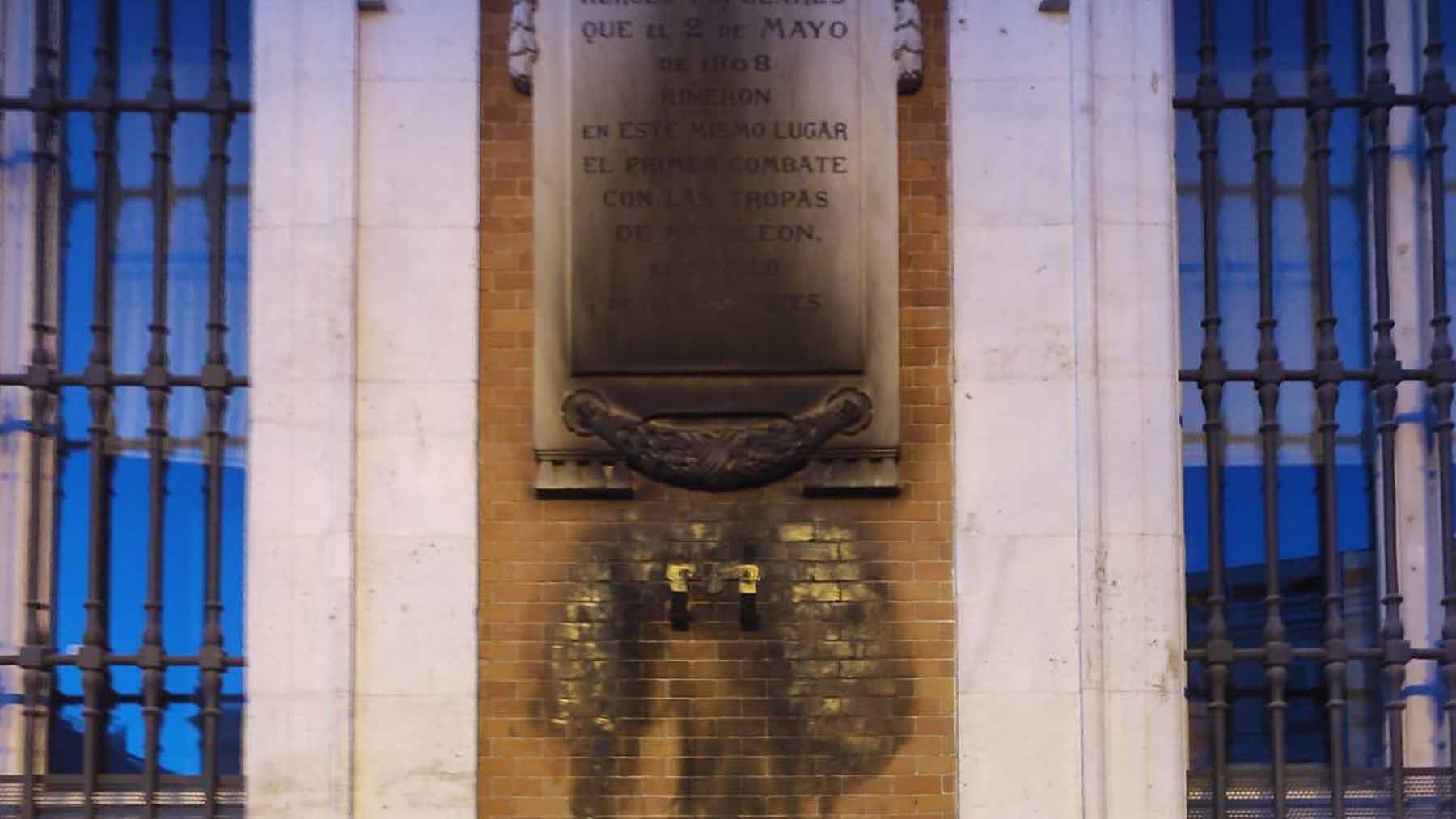 Ayuso denuncia la quema de la placa dedicada a los Héroes del 2 de Mayo en su sede oficial