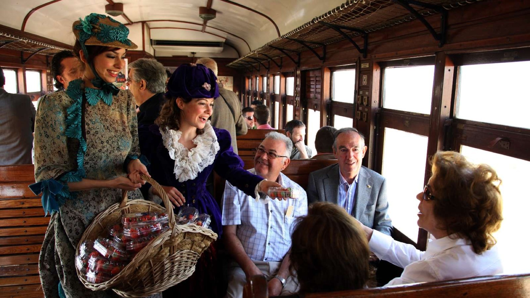 A lo largo del recorrido, el personal del tren va vestido de época y ofrece una degustación de fresas, el fruto más característico de Aranjuez. Los trenes suelen salir a las 10 h y regresar cuando comienza a caer la tarde, a eso de las 18,30 horas.