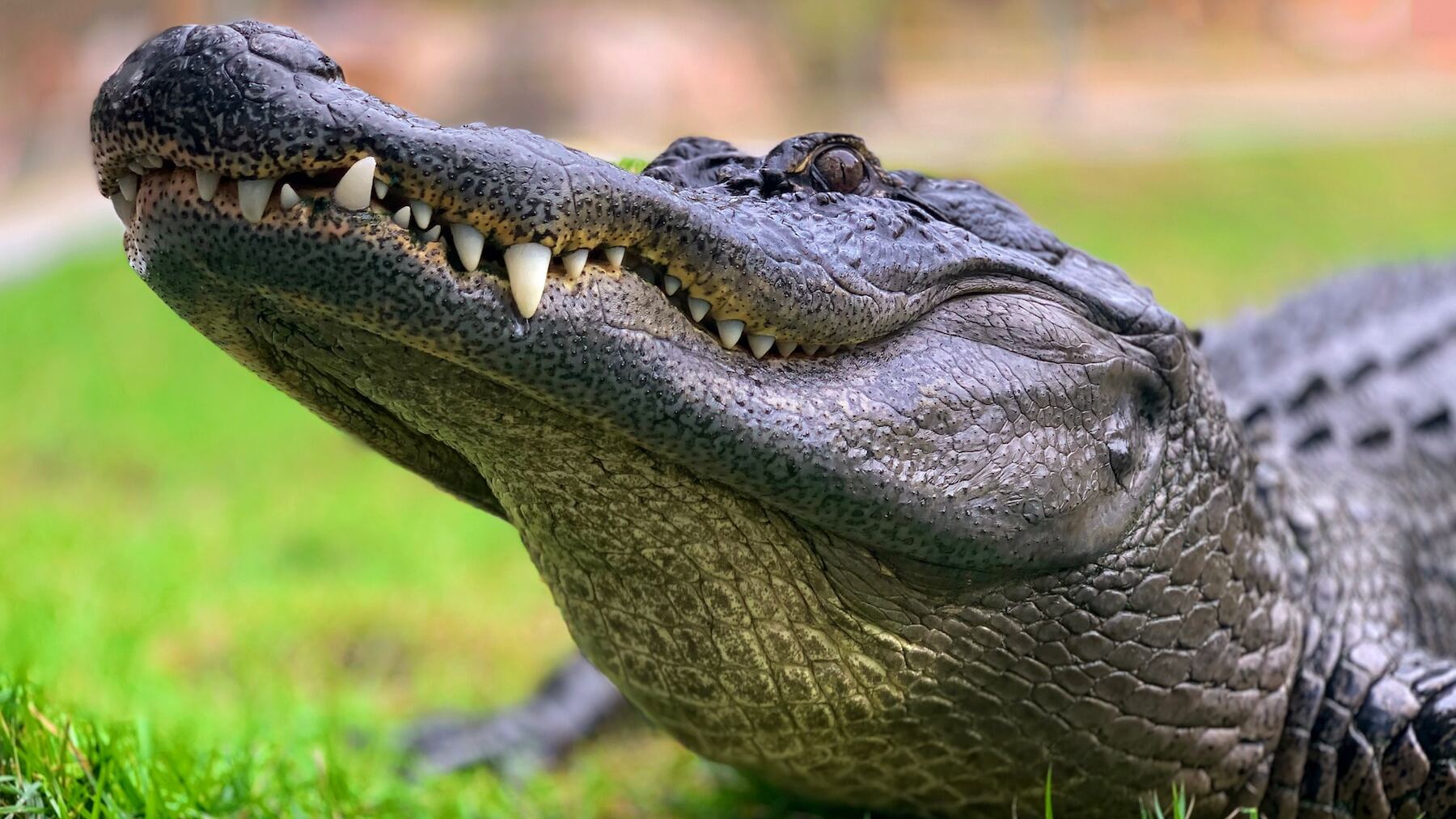 Un impresionante cocodrilo gigante se pasea por un campo de golf