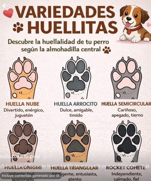 Estos rasgos característicos de los perros se pueden ver en las huellas que dejan, según ha publicado un veterinario experto en la materia en una imagen publicada en las redes sociales. «¿Sabías que la forma de la almohadilla central puede parecer diferente en cada perro?», reza el titular de la publicación que ha realizado la cuenta @todo.para.tu.pelu, que pone el foco en las almohadillas, que están situadas en la parte inferior de las patas, y que les otorgan flexibilidad y resistencia ante los impactos.