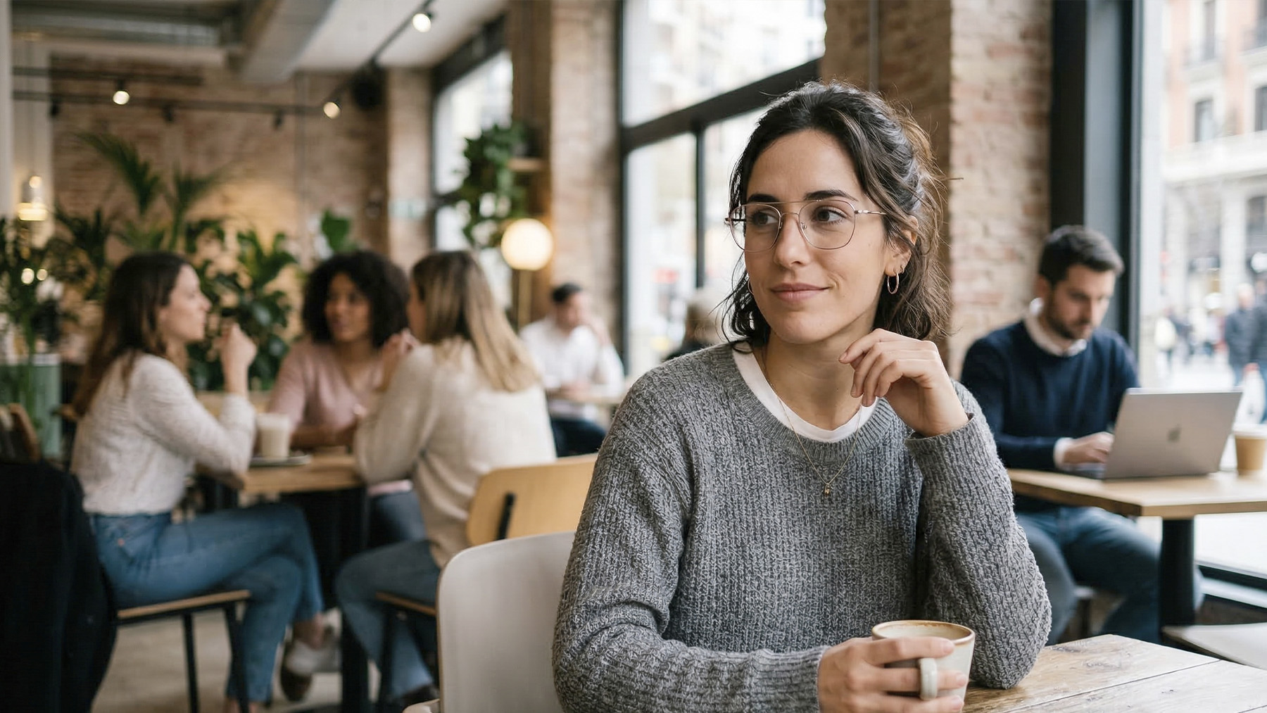 Mujer en cafetería