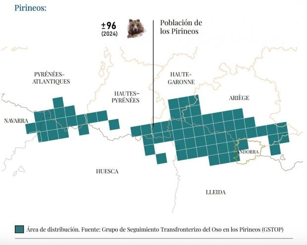 En los Pirineos se contaron en 2024 un total de 94 osos pardos, debido a un declive «inexorable» a causa de la persecución humana.
