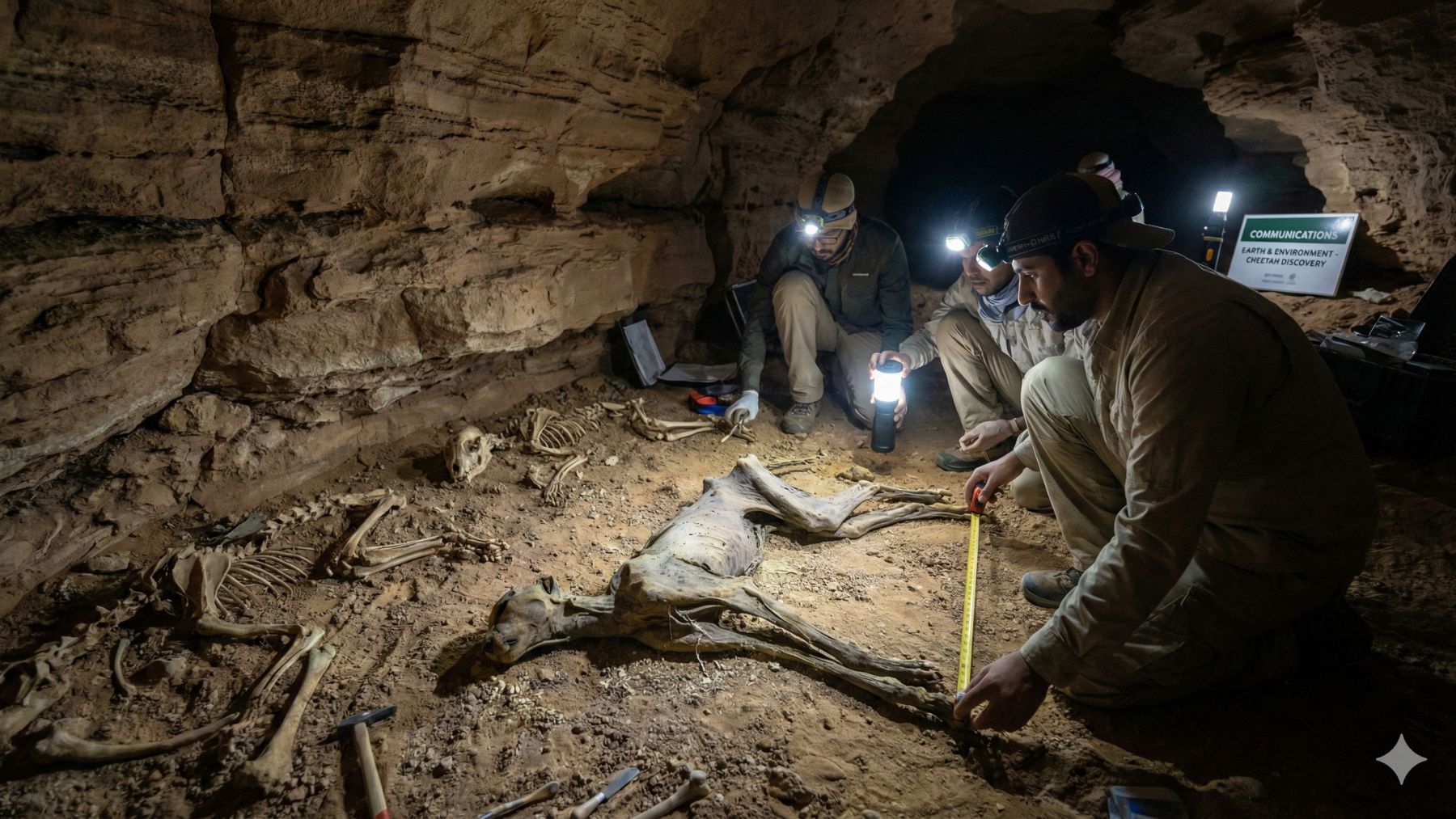Se trata del descubrimiento de siete momias de guepardos en un estado de conservación excepcional, acompañadas de otros 54 restos esqueléticos de la misma especie. El material recuperado ha permitido a los investigadores reconstruir el pasado evolutivo de estos grandes felinos en un área donde hoy se encuentran extintos.