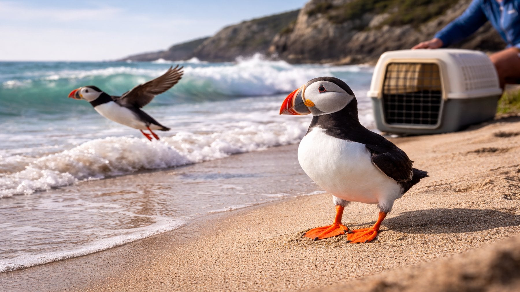 Dos frailecillos llegan desfallecidos a las playas gallegas: en menos de 15 días ya vuelan de regreso a Islandia