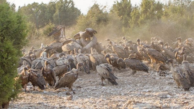 En estos espacios, los restos de ovejas y caballos constituyen una fuente habitual de alimento para los buitres.