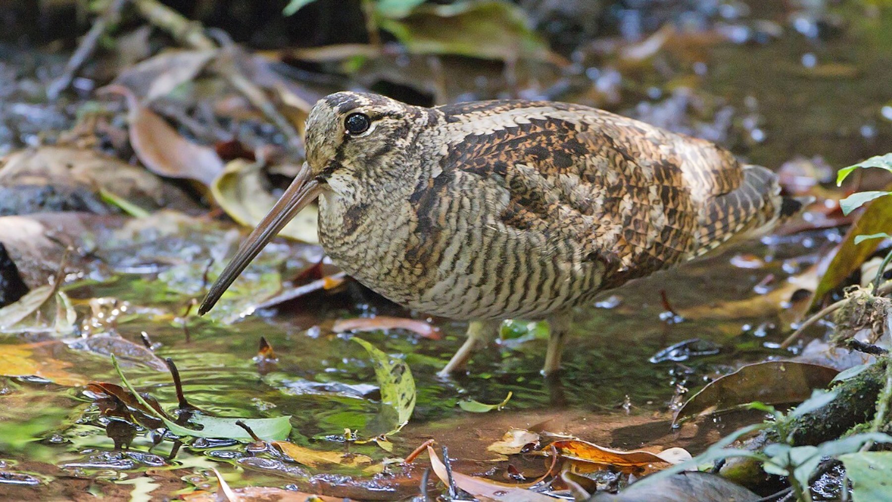 La becada tiene un tamaño parecido al de una perdiz roja y un pico largo y afilado que usa para buscar lombrices en el suelo húmedo. Sus ojos, colocados muy atrás, le dan una visión casi completa del entorno.