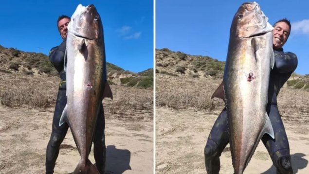 En aguas del Estrecho de Gibraltar, un experimentado pescador submarino protagonizó una de esas jornadas memorables. Armado únicamente con su fusil, su paciencia y la pericia acumulada tras más de tres décadas bajo el agua, consiguió capturar un ejemplar de pez limón de dimensiones extraordinarias: más de 40 kilos de peso y casi tan alto como él mismo.