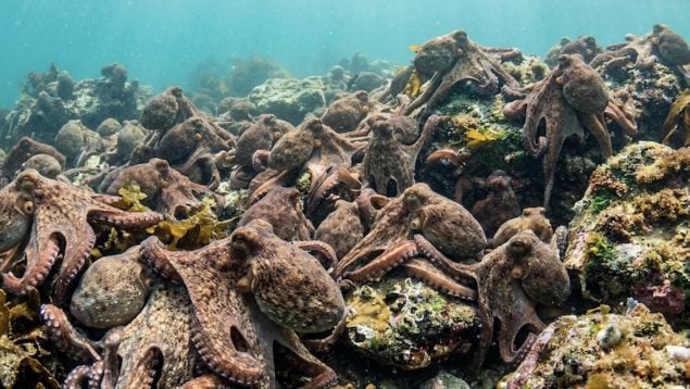 El pulpo común (Octopus vulgaris) siempre había vivido en aguas británicas, pero en cantidades mínimas. Sólo tres explosiones demográficas similares constan en los registros: 1900, 1933 y 1951. La de 2025 las superó a todas. Los voluntarios de The Wildlife Trusts contabilizaron un aumento del 1.500% respecto al pequeño repunte de 2023, y la organización conservacionista declaró 2025 «el Año del Pulpo en auge».