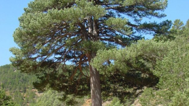 El conocido Pino del Escobón, situado en Linares de Mora (Teruel), es uno de los ejemplares más emblemáticos de la especie Pinus nigra subsp. salzmannii, comúnmente llamada pino laricio.
